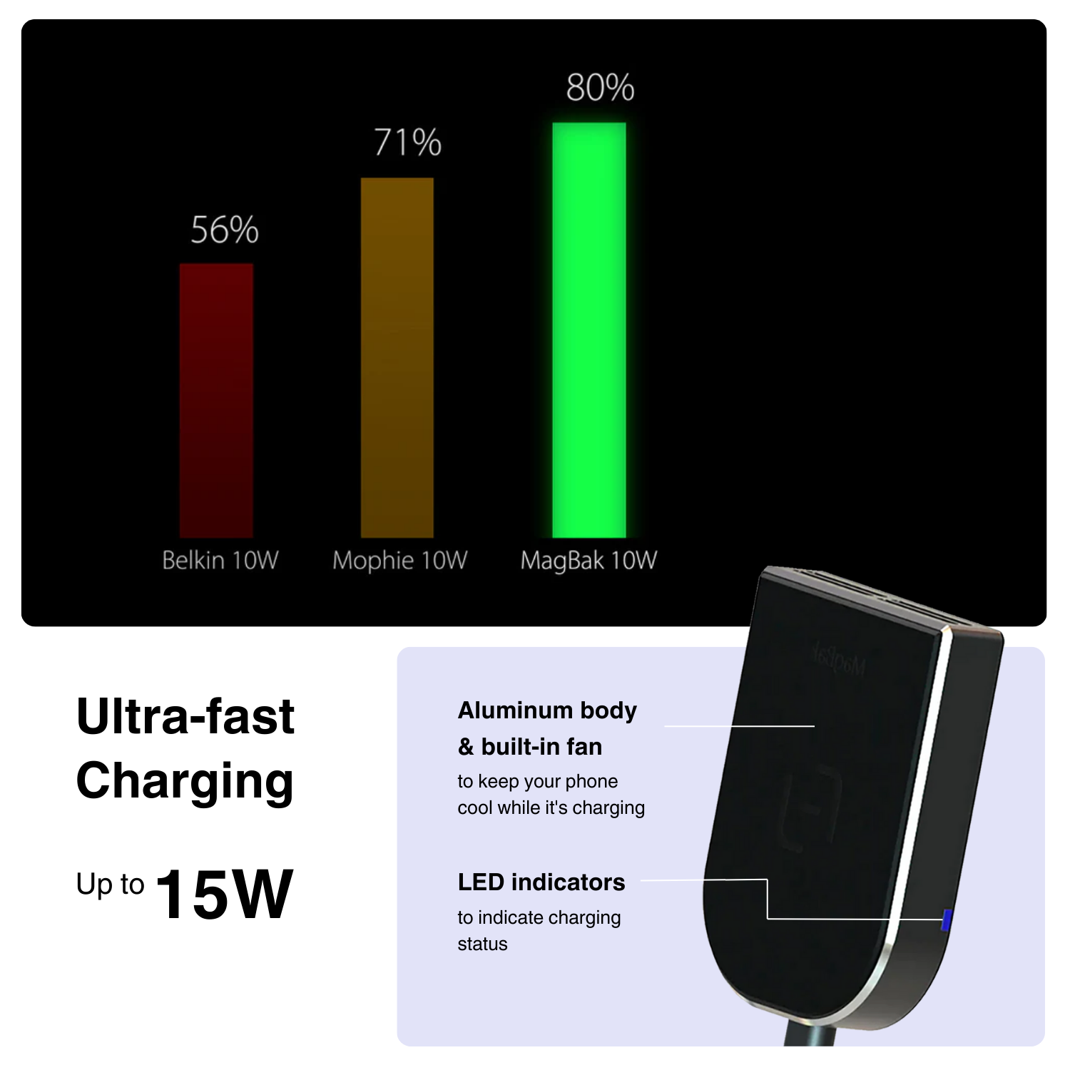 Magbak Wireless Charger | | Ultra-fast Charging + Active Cooling Technology (iPhone 15 & below series)